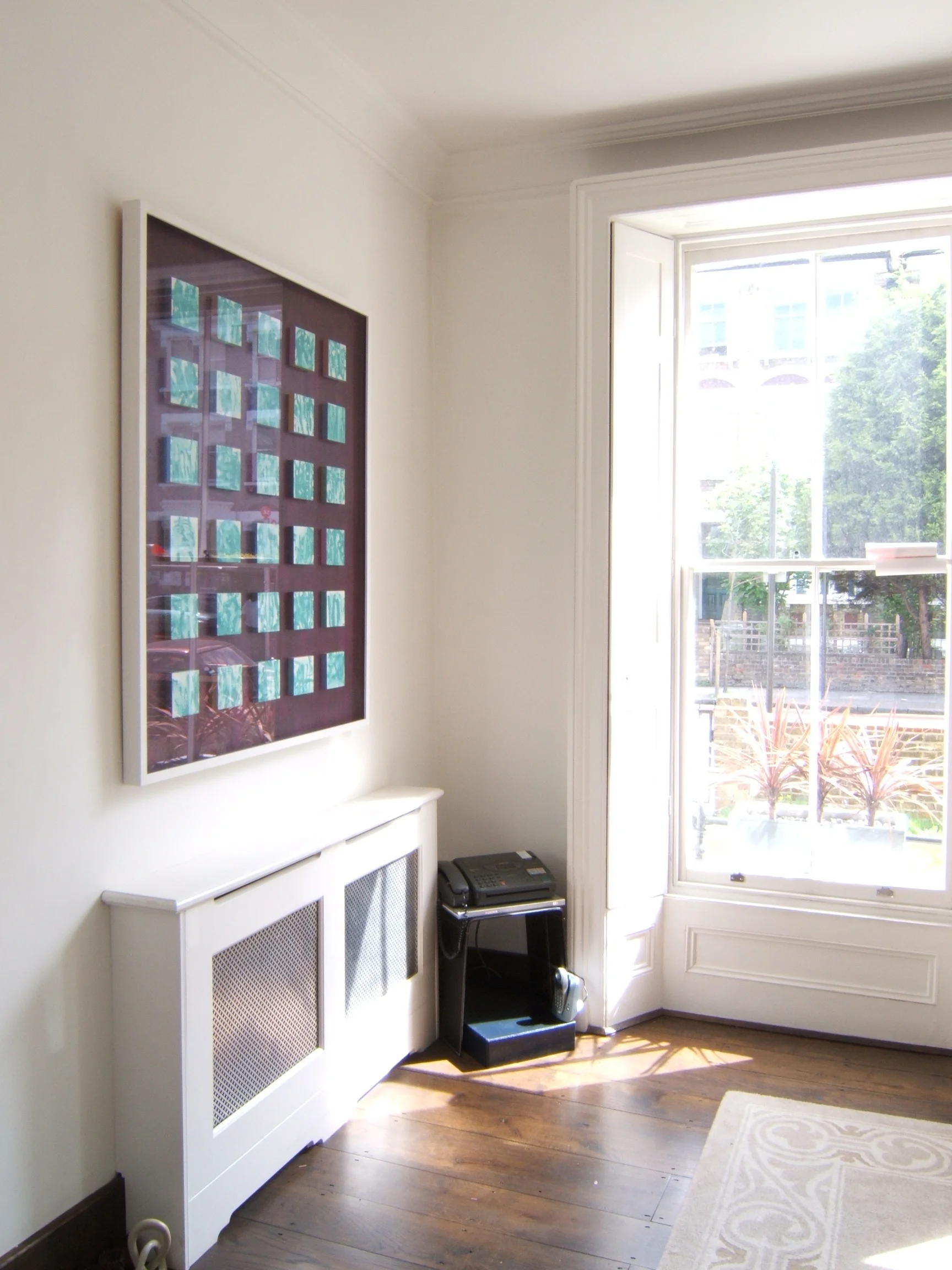 In Colour Fugue II three rows of tablets were mounted up high to create a frieze that compelled the viewer to look upward to the ornate architrave of the Regency property. I wanted to highlight over-looked elements of buildings and to combine this with the experience one can have when entering a religious building and on sensing something above, look up to discover beautiful frescoes or ornate gold carvings.