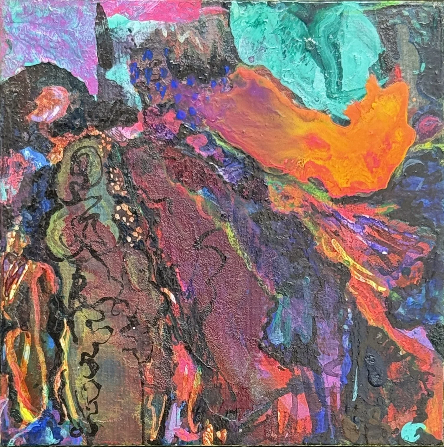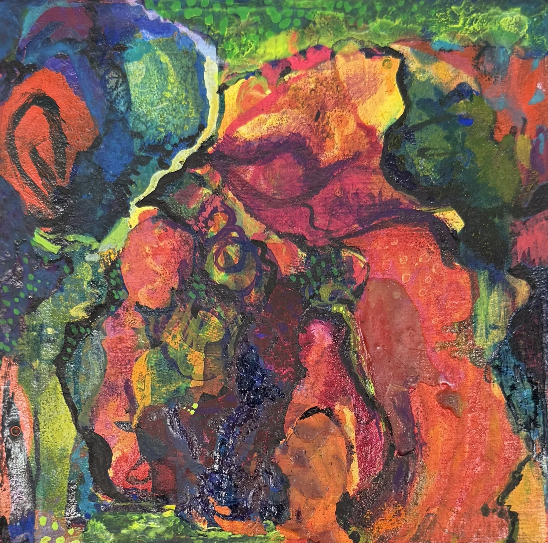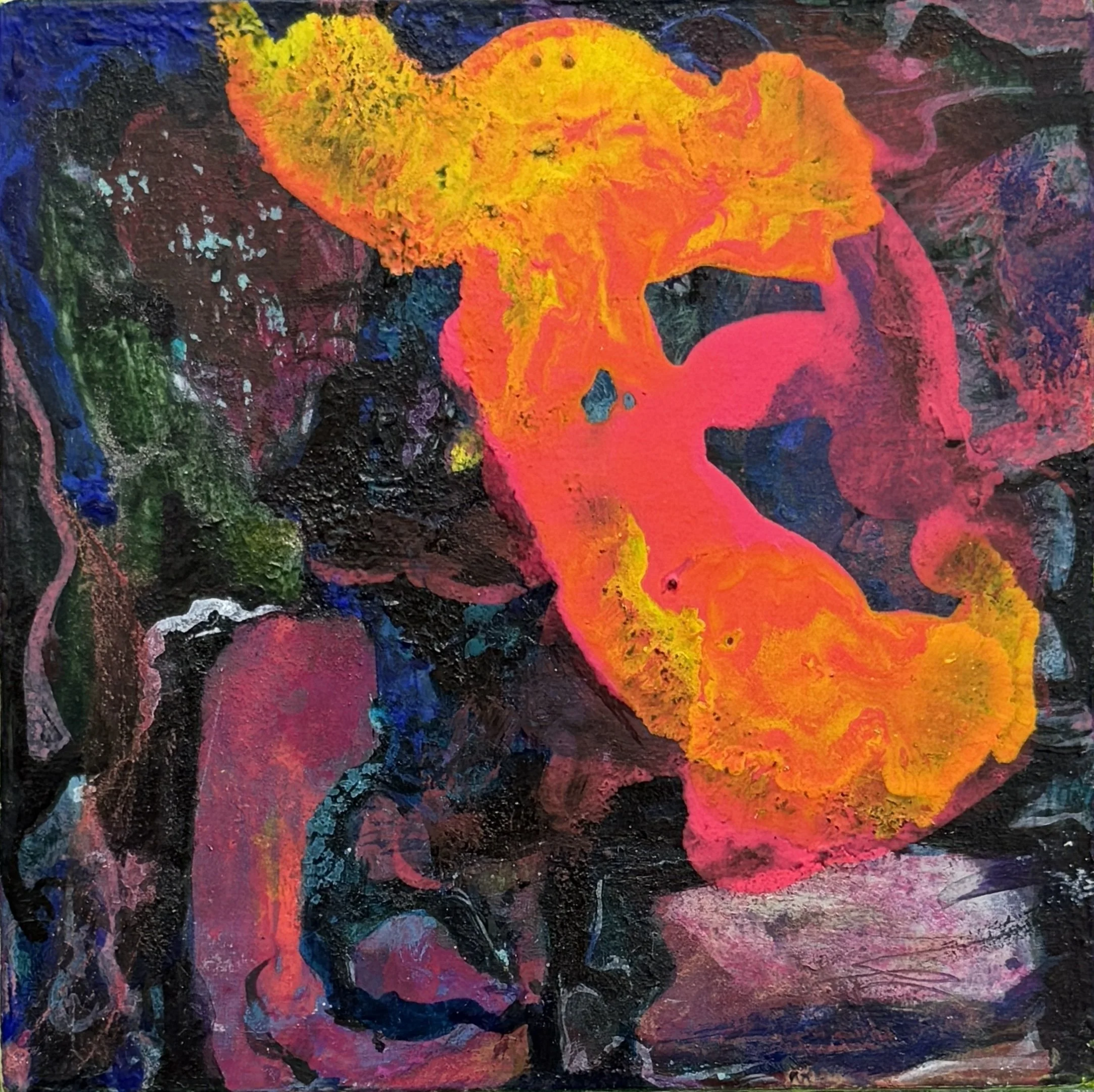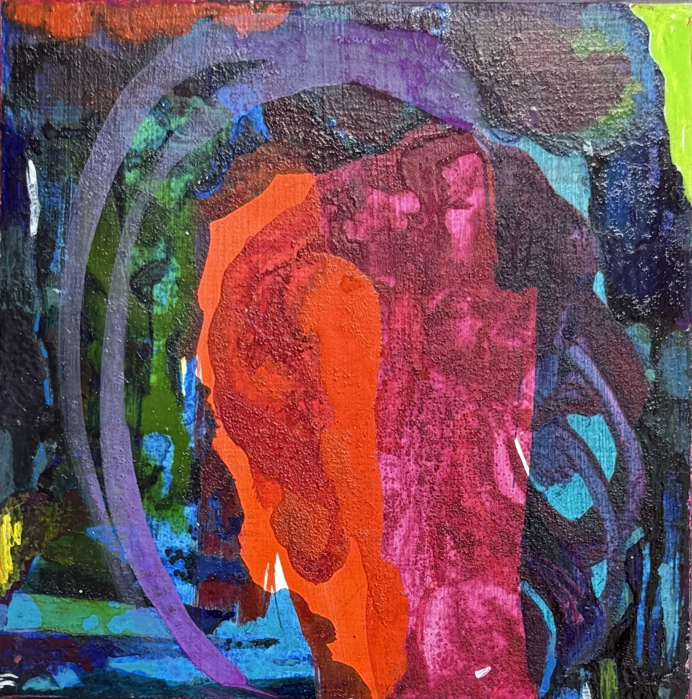 Fiery Landscape, 2023, acrylic on wood, 10 x 10 cms