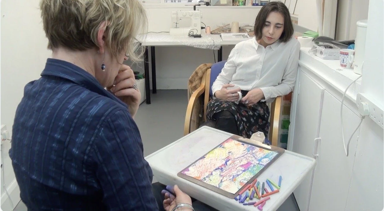 Film of Melissa in her studio discussing her process and creating an auragraph drawing based on a guest
